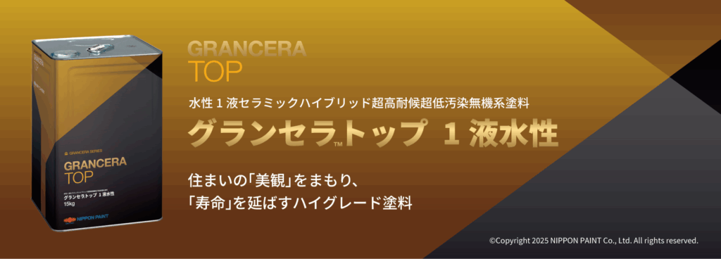 今回使用したのは、日本ペイントの高耐久無機塗料 グランセラトップ と